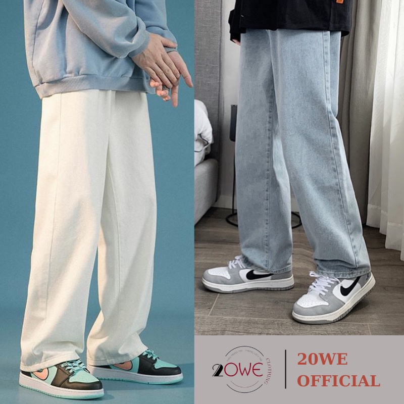 Quần jean trắng nam baggy ống suông rộng