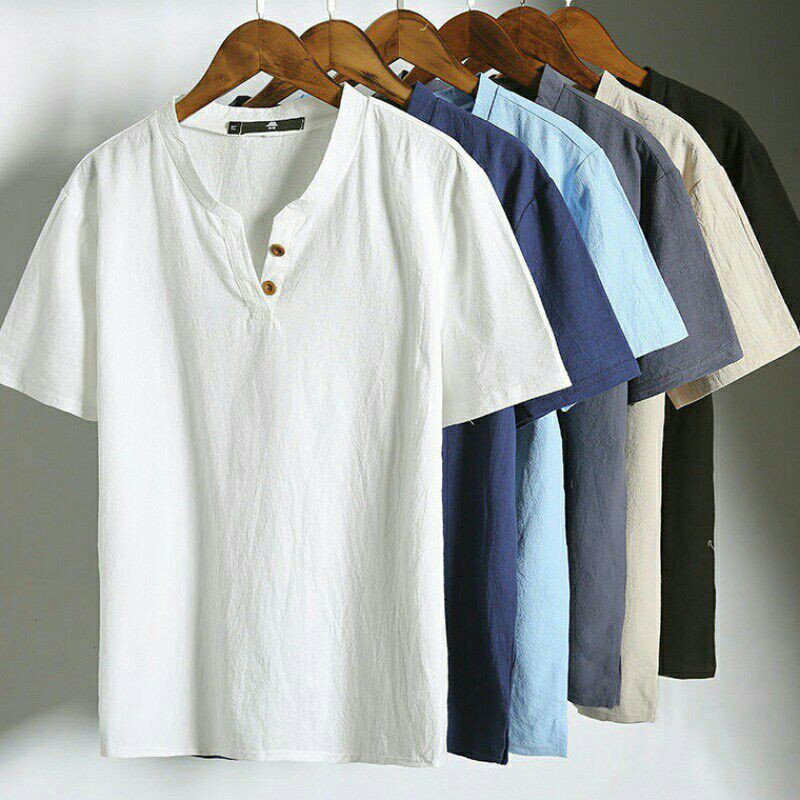 Áo đũi nam cổ tròn viền ngắn tay vải đũi