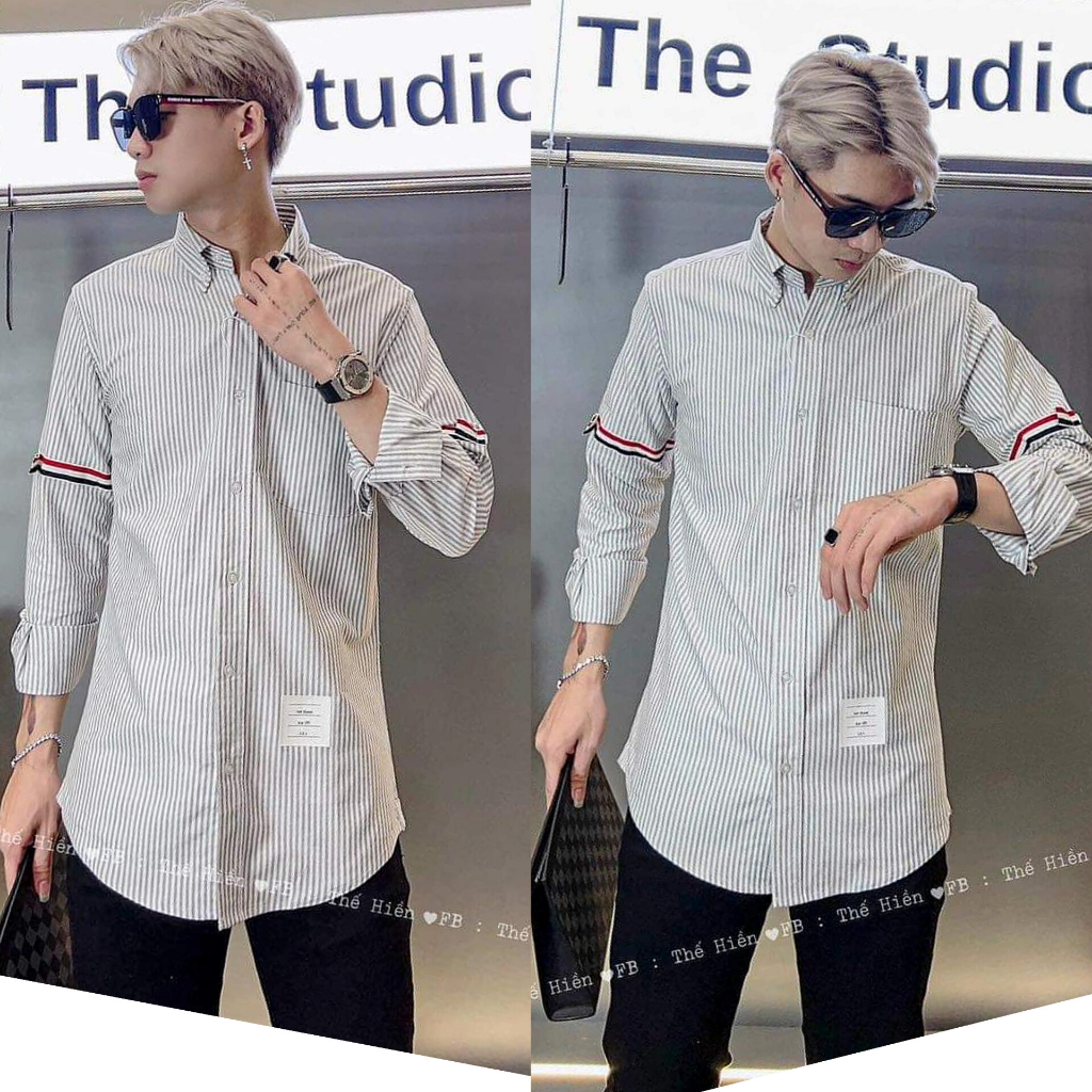 Áo Sơ Mi Kẻ Sọc Xanh Xám