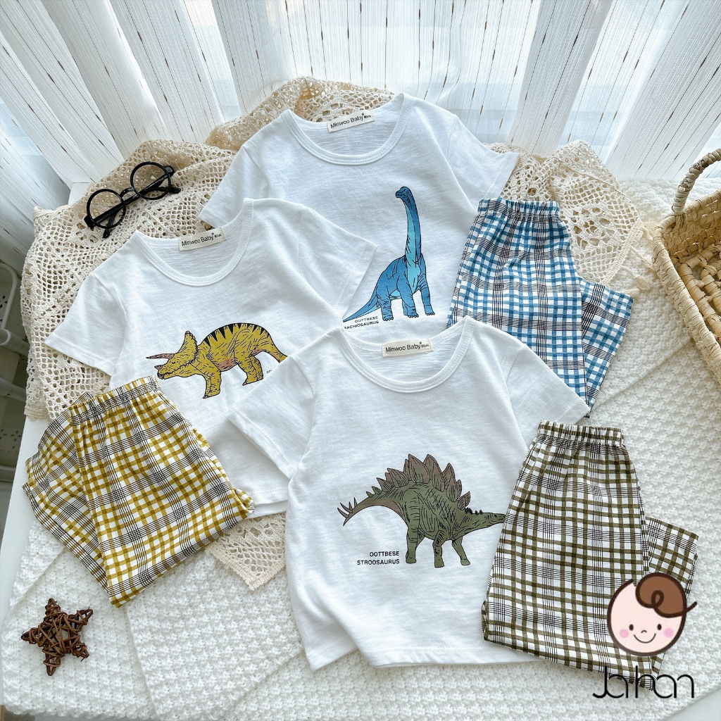 Bộ quần áo trẻ em cộc tay quần caro dài